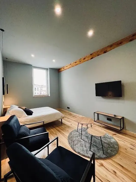 We couldn't stay, we rented for one night and we had to leave and lose €85. It was a fourth floor without an elevator, the stairs were very narrow and we couldn't take our suitcase and ourselves. Which is not in the advertisement. For health reasons I cannot lift weights up stairs. The house is very clean and very beautiful. But the location is false, it is not 0.100 m from the center, there are 100 meters to the bridge. And from there to the center there will be more 800 meters. The terrible area is on the outskirts, all surrounded by houses in ruins. I have photos of the exterior that are not included in the ad either.